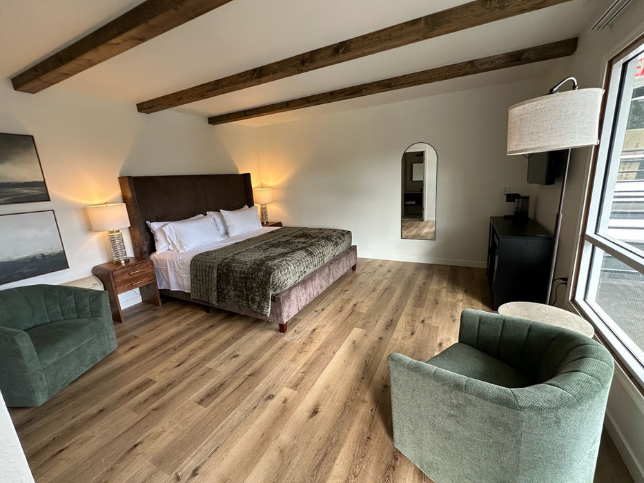 Soft, warm, and quietly elegant. The Latte Room is wrapped in creamy neutrals and natural wood accents that create a sense of calm and ease. Two comfortable club chairs and a side table invite relaxed moments, while bedside tables offer thoughtful balance.